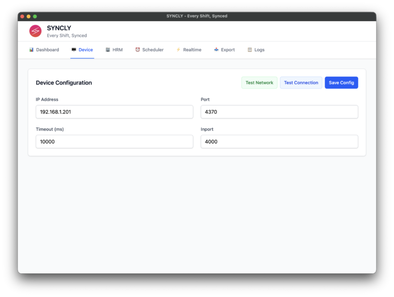 Managing employee attendance can be time-consuming and prone to mistakes, especially when you rely on manual entry or spreadsheets. Syncly is a desktop application designed to make attendance tracking simple, automatic, and reliable. With Syncly, you can connect your ZKTeco fingerprint devices to any HRM system, including Aleph HRM, and transfer attendance data automatically. Every shift is recorded and synced, helping your business save time, reduce errors, and gain real-time insights into employee attendance.